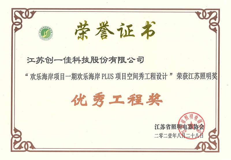 歡樂海岸PLUS項(xiàng)目榮獲“江蘇照明獎(jiǎng)優(yōu)秀工程獎(jiǎng)”
