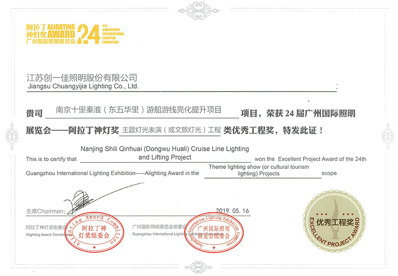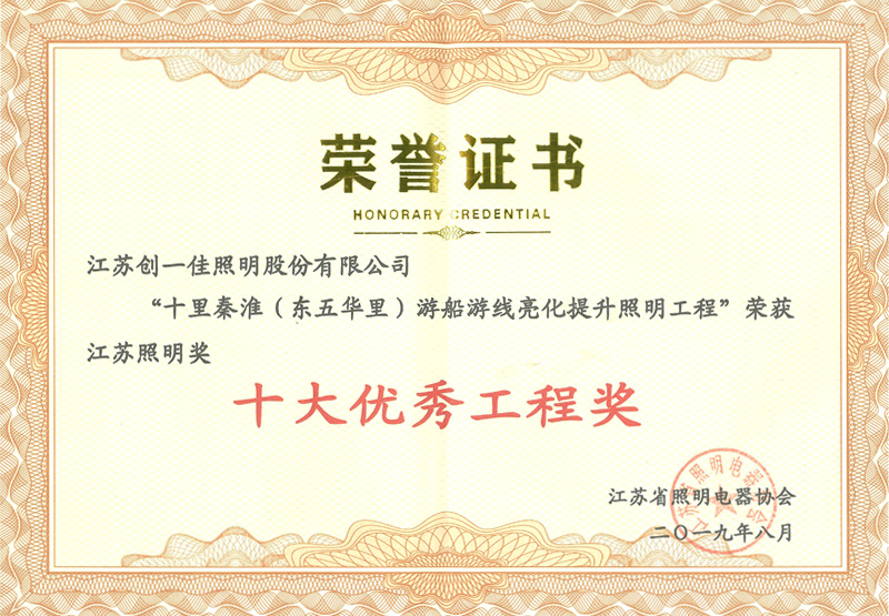 南京十里秦淮(東五華里)榮獲“江蘇照明獎(jiǎng)十大優(yōu)秀工程獎(jiǎng)”