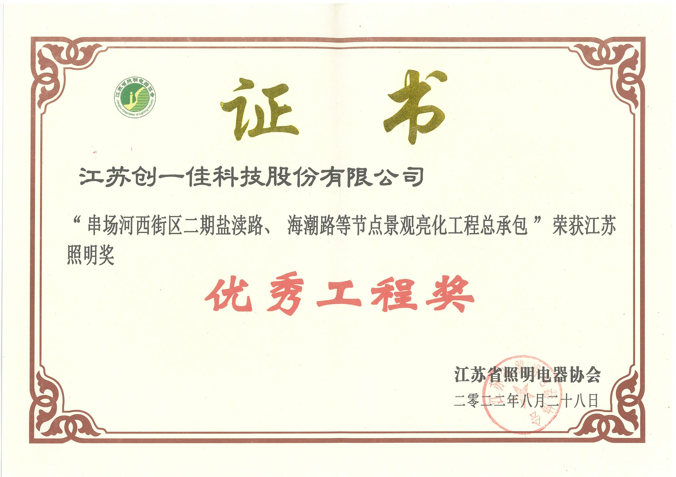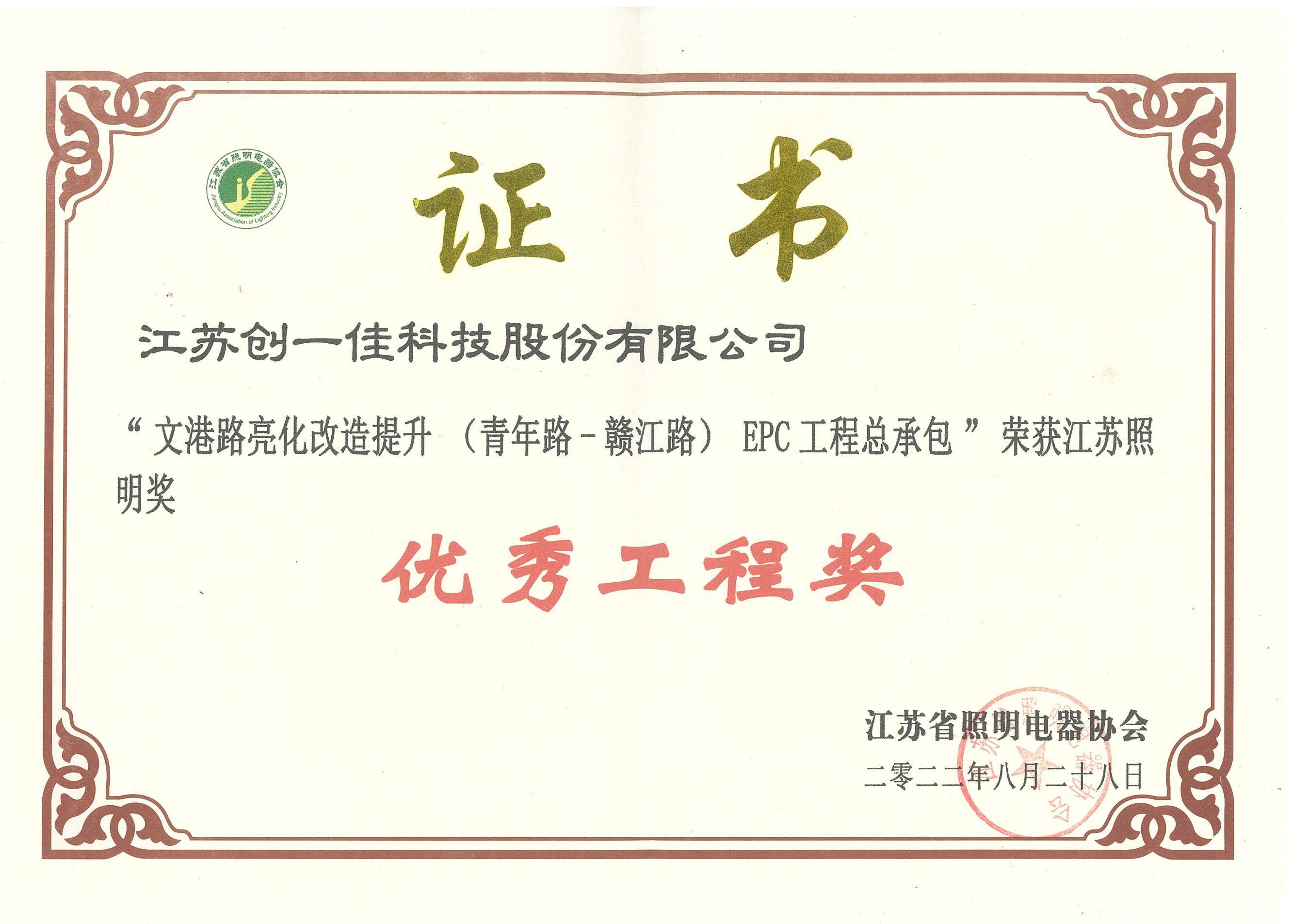 鹽城文港路EPC總承包項(xiàng)目榮獲“江蘇照明獎(jiǎng)優(yōu)秀工程獎(jiǎng)”