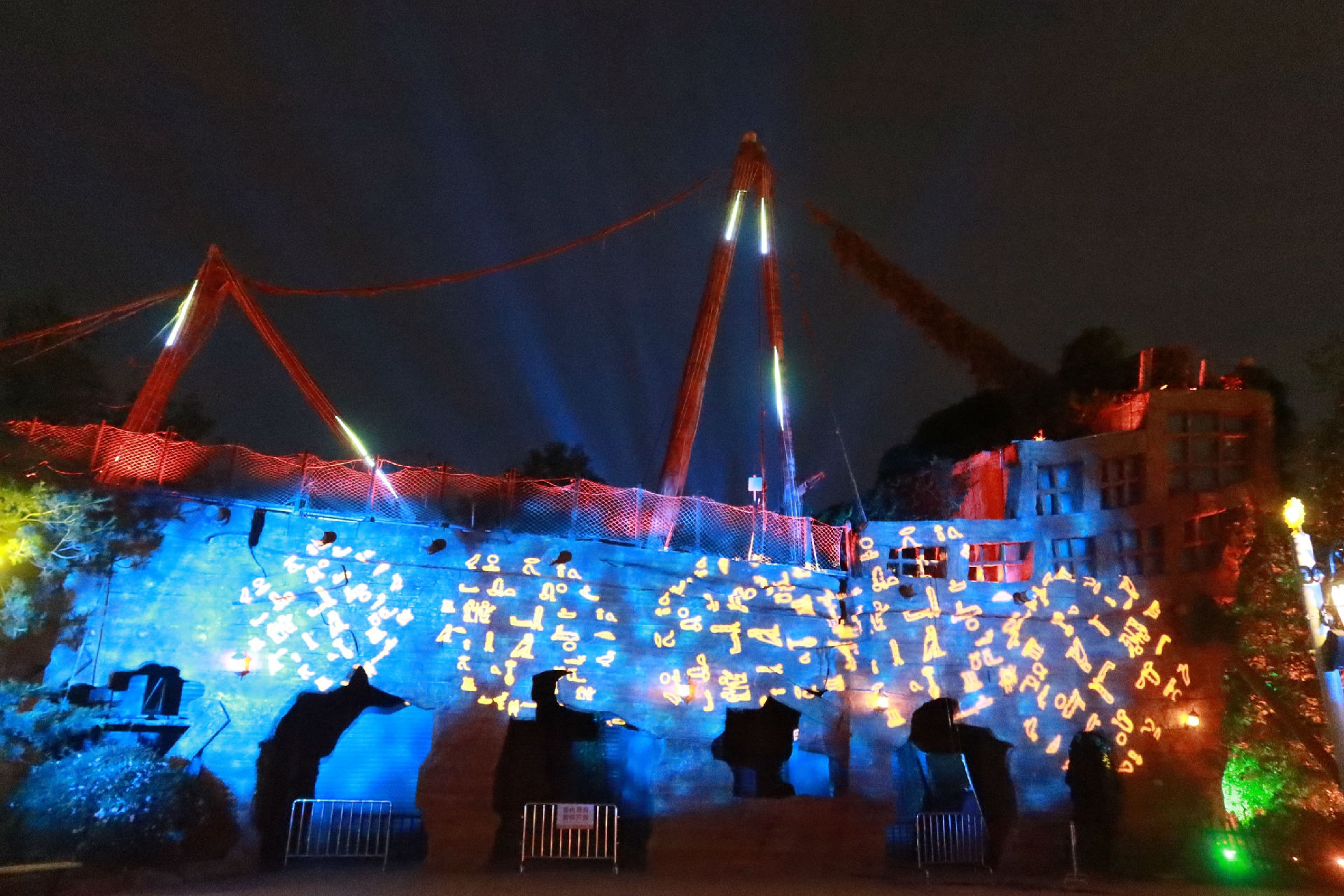 北京歡樂谷,整個項目采用的是EPC(設計施工一體化),從設計、安裝到最終的調試花了整整一年的時間,采用時下夜游燈光的主流設備傳統(tǒng)燈具、投影類設備、音響、水秀設備、互動等設備、舞臺設備、特效設備等,通過復雜的綜合控制系統(tǒng),實現(xiàn)強烈的視覺沖擊力和沉浸式數(shù)字體驗。同時在項目中,設計了一些能夠讓游客參與,通過參與帶來場景變化的節(jié)點。這個互動參與不是簡單的圖像或者內容變化,而是能讓游客帶入情感,通過視聽+情感,大大提升體驗感。