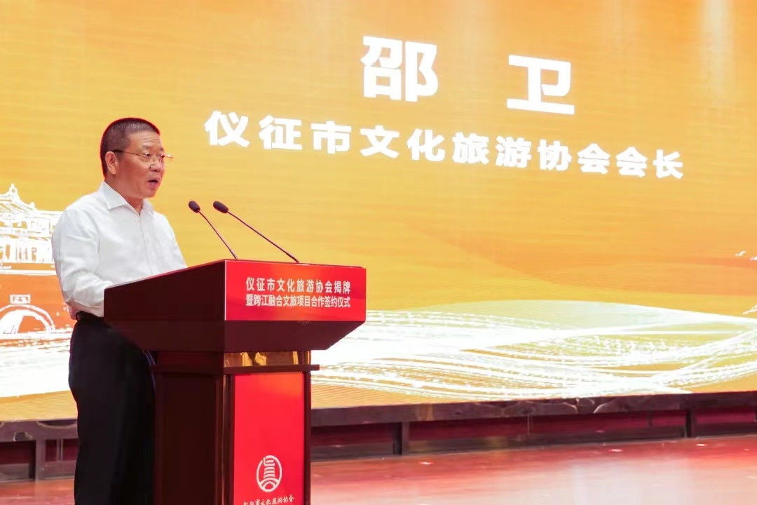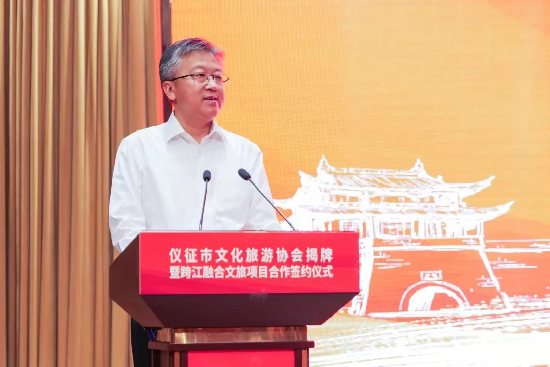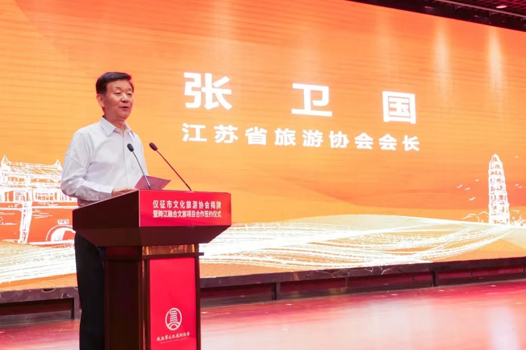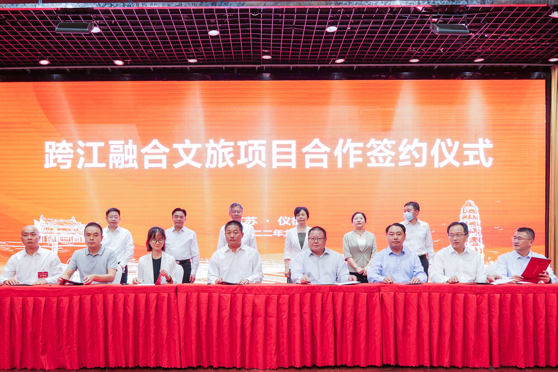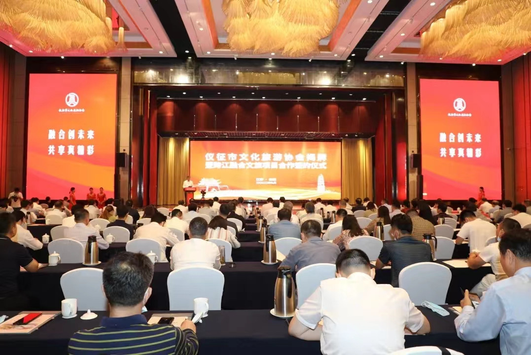 2022年9月1日,儀征市文化旅游協(xié)會揭牌暨跨江融合文旅項目合作簽約儀式在古南都金甌國際大酒店舉行。江蘇省旅游協(xié)會會長張衛(wèi)國、執(zhí)行副會長詹庚慶、秘書長許家聞,揚州市政府副市長余珽,南京旅游業(yè)協(xié)會會長張農(nóng),揚州市旅游協(xié)會會長王玉新,鎮(zhèn)江市旅游協(xié)會執(zhí)行會長凌蘇,江寧區(qū)旅游業(yè)協(xié)會會長陳昌喜,句容市旅游協(xié)會會長王平,儀征市文化旅游協(xié)會會長邵衛(wèi),儀征市委書記孫建年,儀征市人大常委會主任仲玲,儀征市政協(xié)主席劉春華,儀征市委常委、組織部部長胡彩云,儀征市委常委、宣傳部部長楊昕,儀征市政府副市長殷仕寶出席本次活動。同時參加活動的還有寧鎮(zhèn)揚旅游協(xié)會相關(guān)負責(zé)同志、儀征市有關(guān)領(lǐng)導(dǎo)及各部門負責(zé)人、儀征市文化旅游協(xié)會發(fā)展顧問、會員單位代表等。